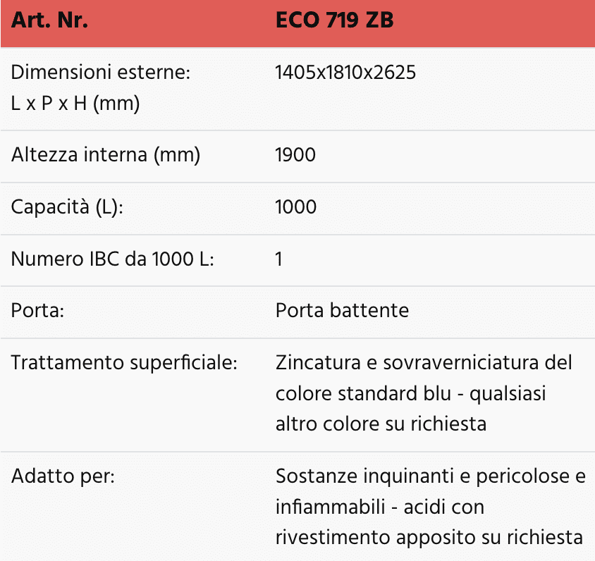 Dati tecnici armadi da esterno per 1 IBC in acciaio zincato