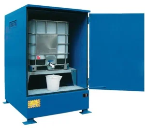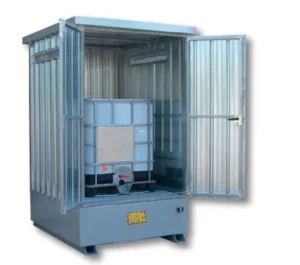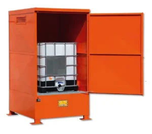 I depositi di stoccaggio per cisterne IBC 1000 L, detti comunemente anche armadi da esterno per IBC, sono necessari per la minimizzazione dei rischi e la gestione di sversamenti accidentali di liquidi pericolosi, inquinanti, infiammabili e corrosivi. Le IBC possono essere danneggiate a causa di un’incauta movimentazione con carrello elevatore o dare luogo a perdite durante le operazioni di riempimento, travaso e svuotamento e quindi possono rappresentare un serio rischio per la sicurezza delle persone e dell’ambiente se non immagazzinate correttamente.