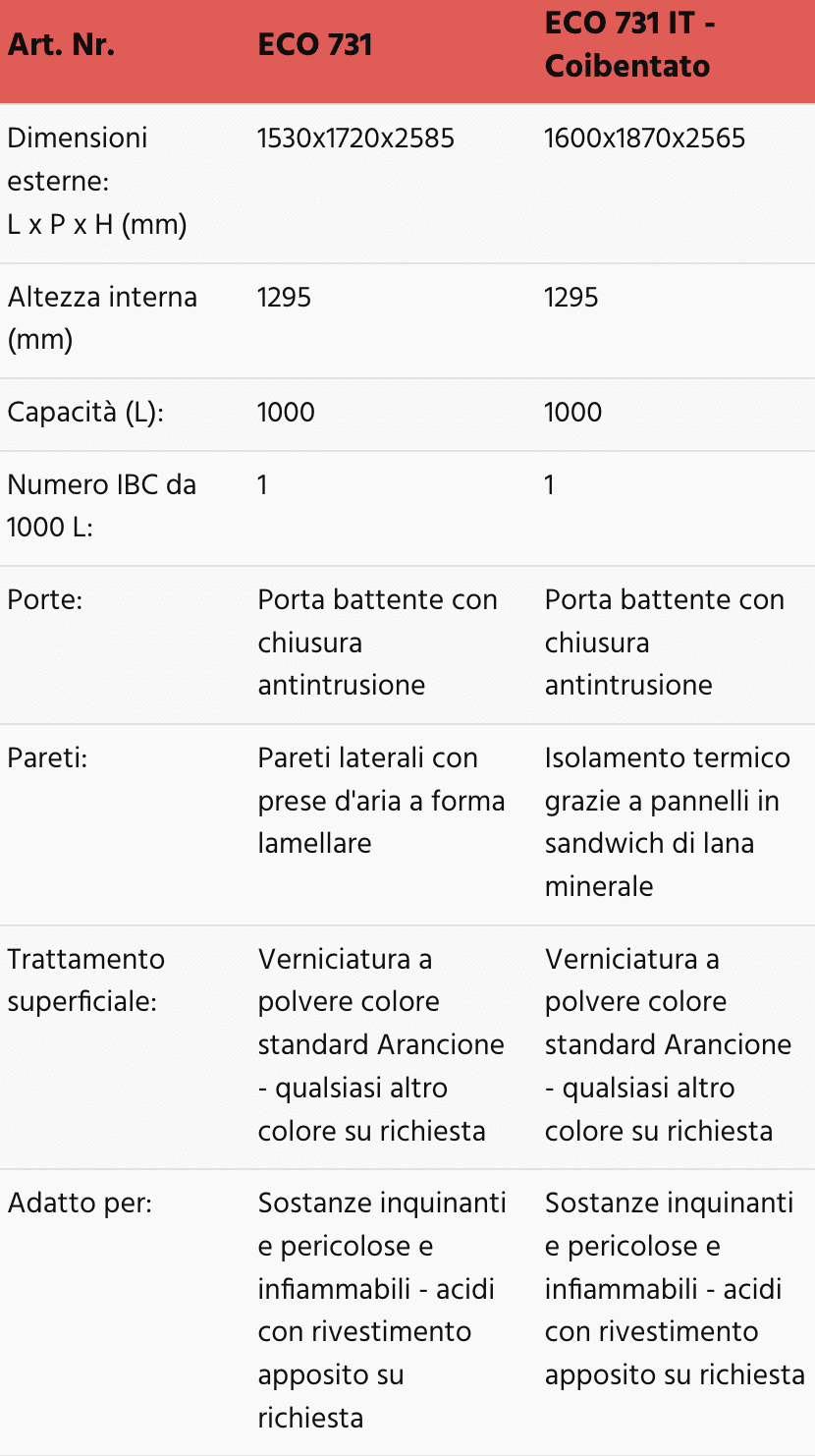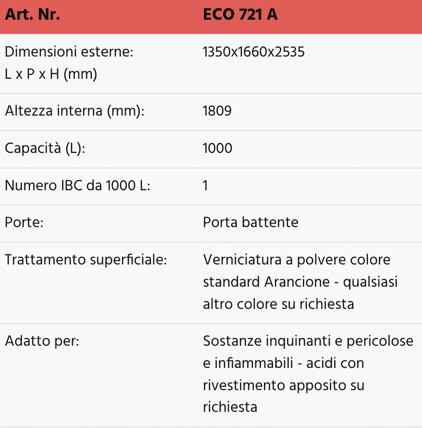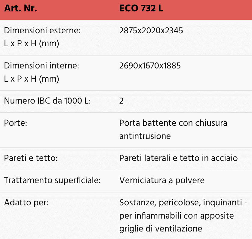 Dati tecnici armadi da esterno per 1 IBC