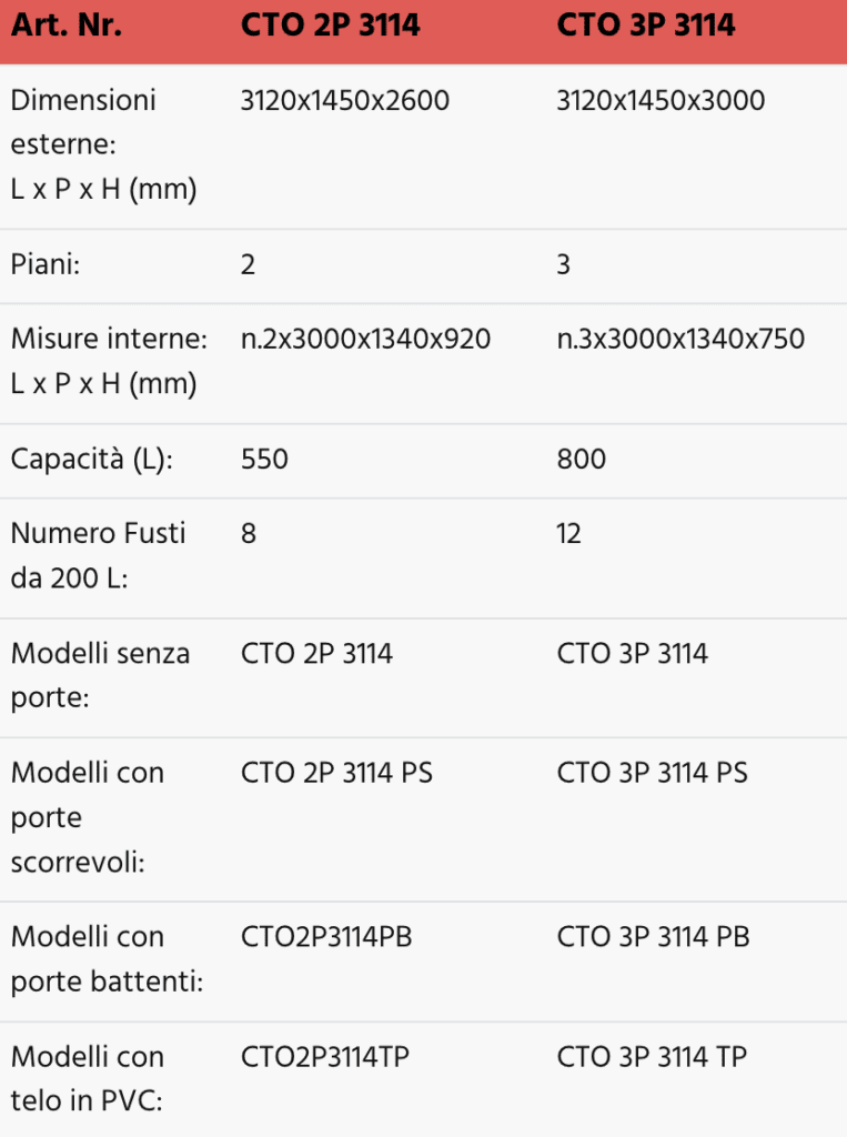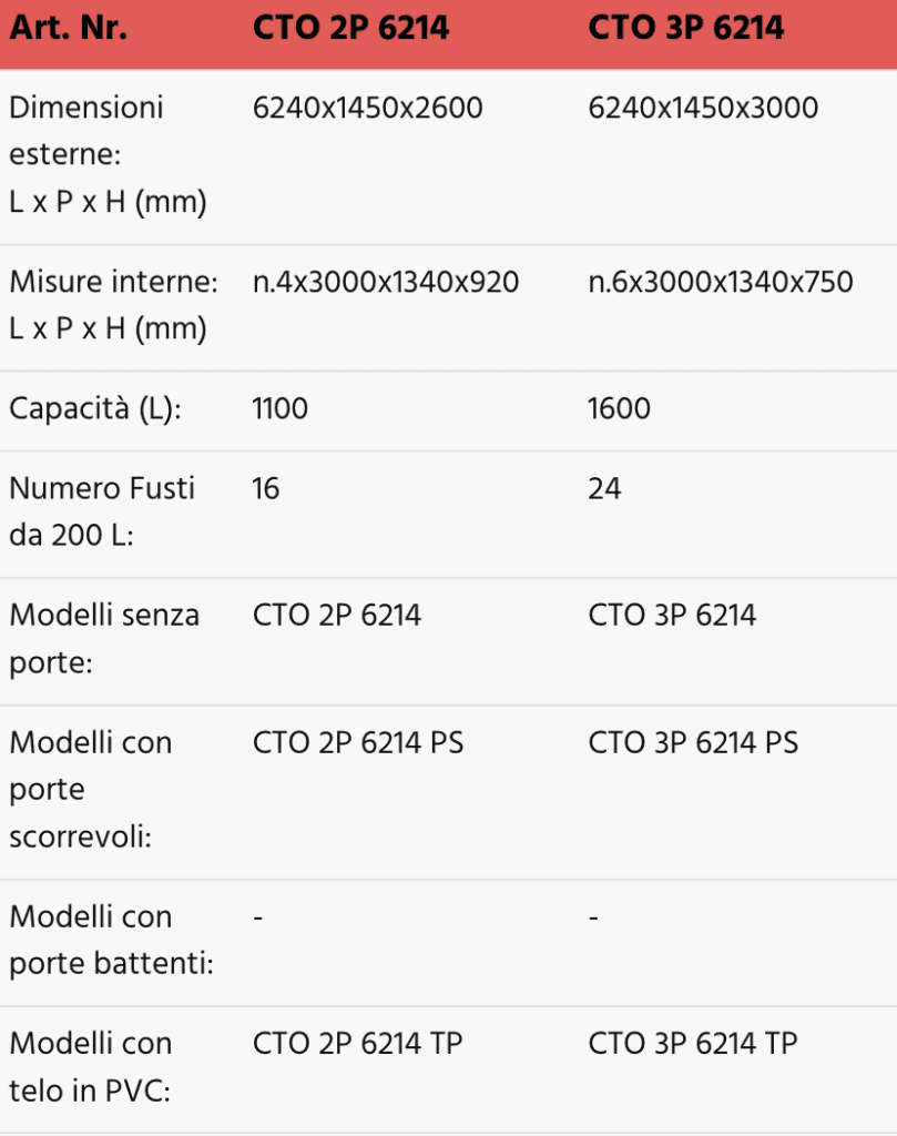 Linea completa di container modulari per lo stoccaggio di fusti. Disponibili anche versioni standard con isolamento termico.