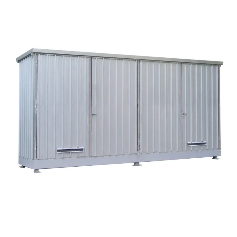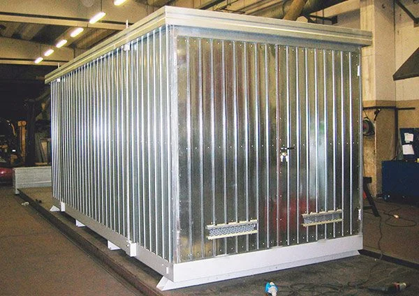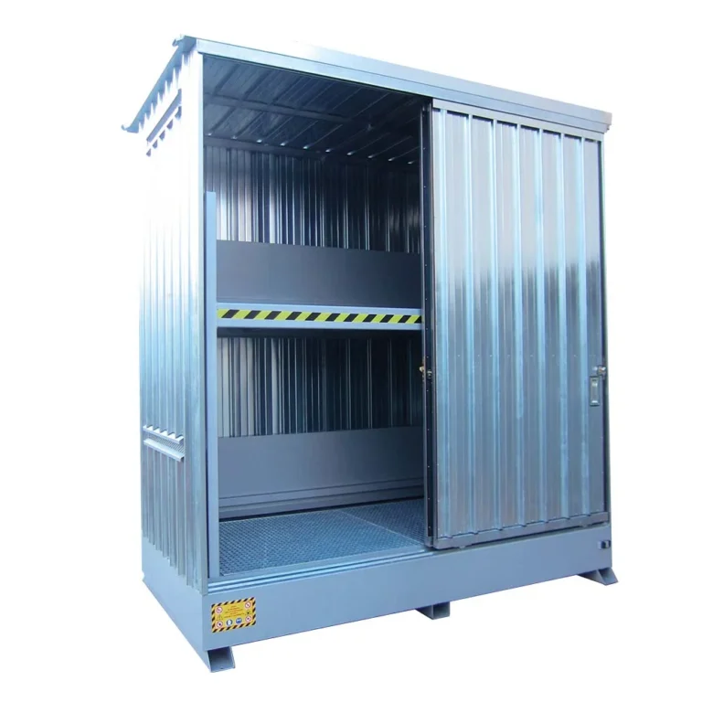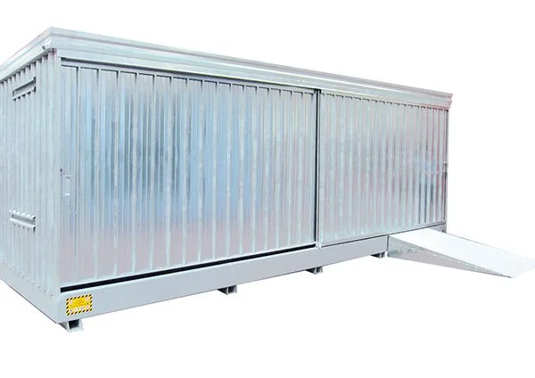 I modul container per fusti realizzati da Sall sono la soluzione ideale per lo stoccaggio esterno a norma di fusti da 200 L e altri piccoli contenitori di liquidi pericolosi, inquinanti e sostanze infiammabili.