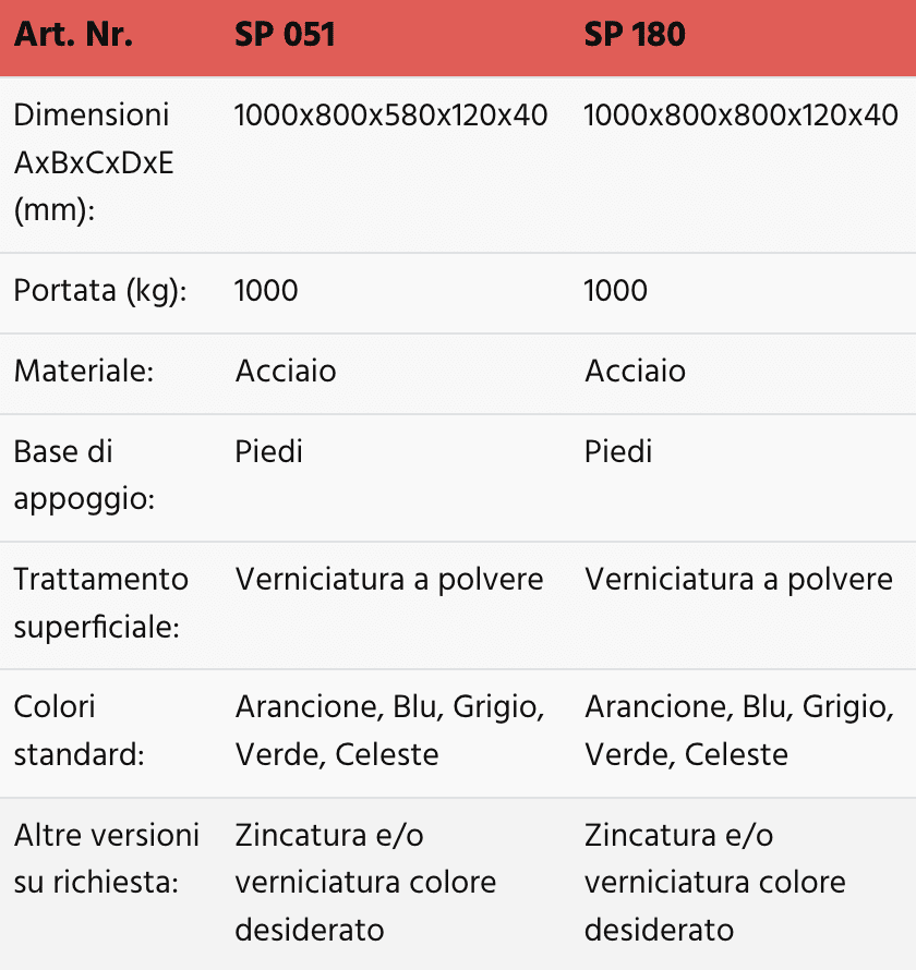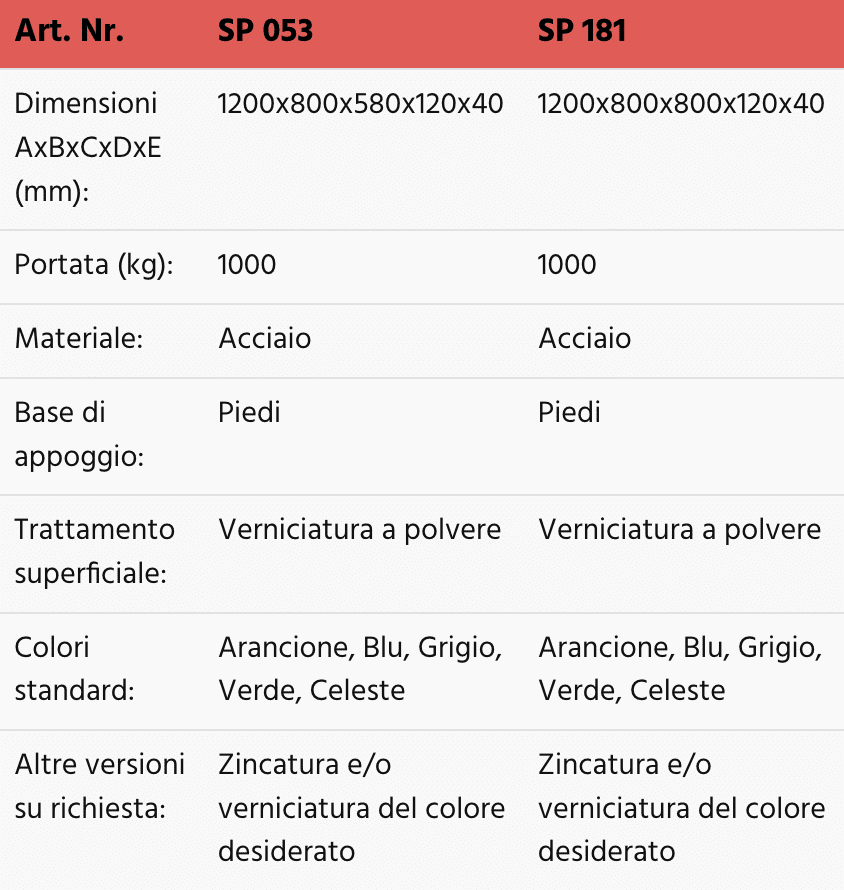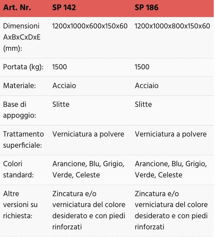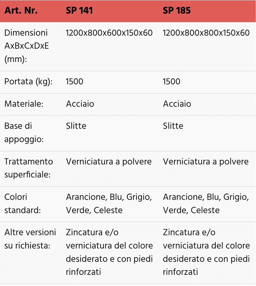 - Ottimizzazione spazi a magazzino: grazie al design sovrapponibile permettono di minimizzare l’ingombro e lo stoccaggio verticale di materiali pesanti a magazzino