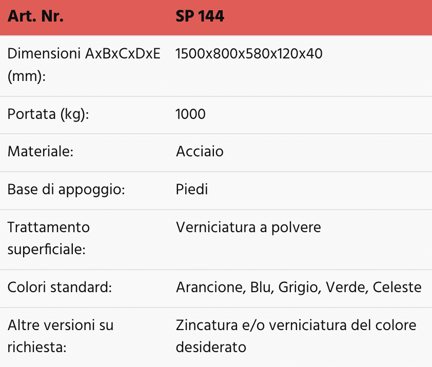 Bancale Sovrapponibile a Montanti Liberi con Pareti in Lamiera Lato Corto – Dim. Base 128×85 cm – Portata: 1400 Kg