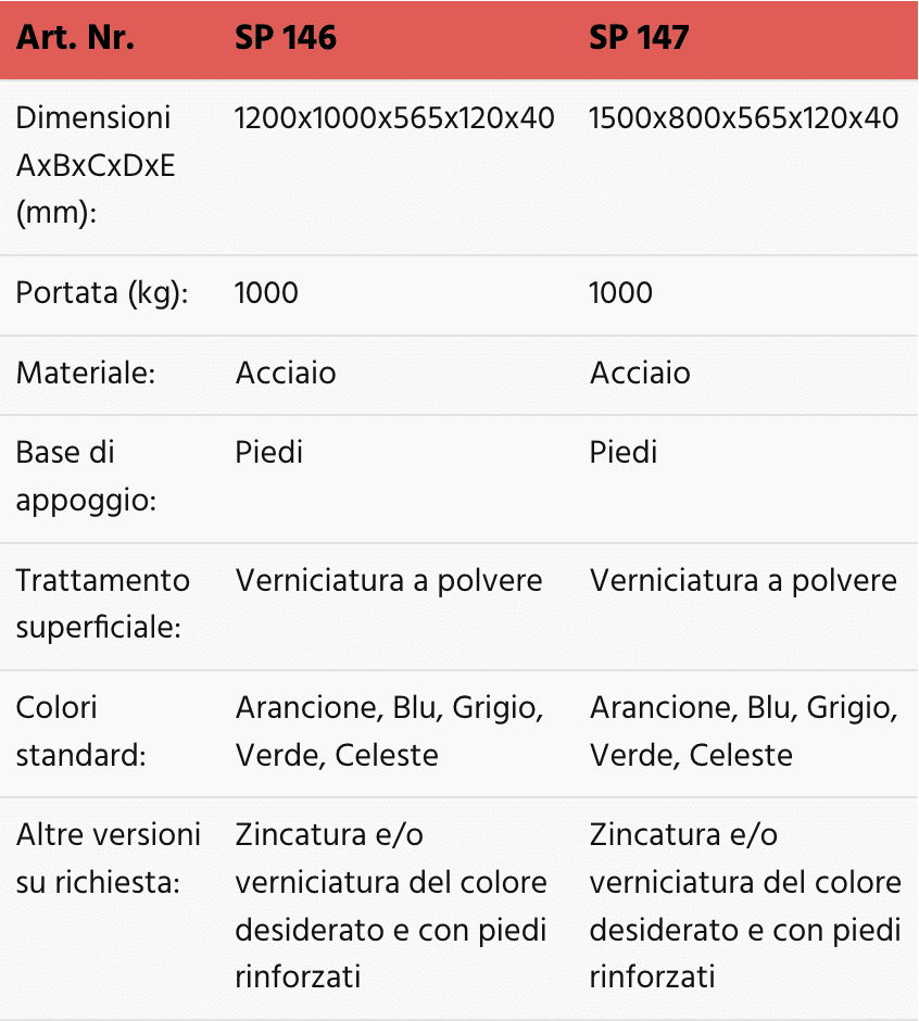 - Minimizzazione investimento iniziale: rispetto ai pallet in legno o in plastica sono riutilizzabili e rappresentano la soluzione più efficiente, resistente e durevole per la movimentazione di carichi pesanti a magazzino