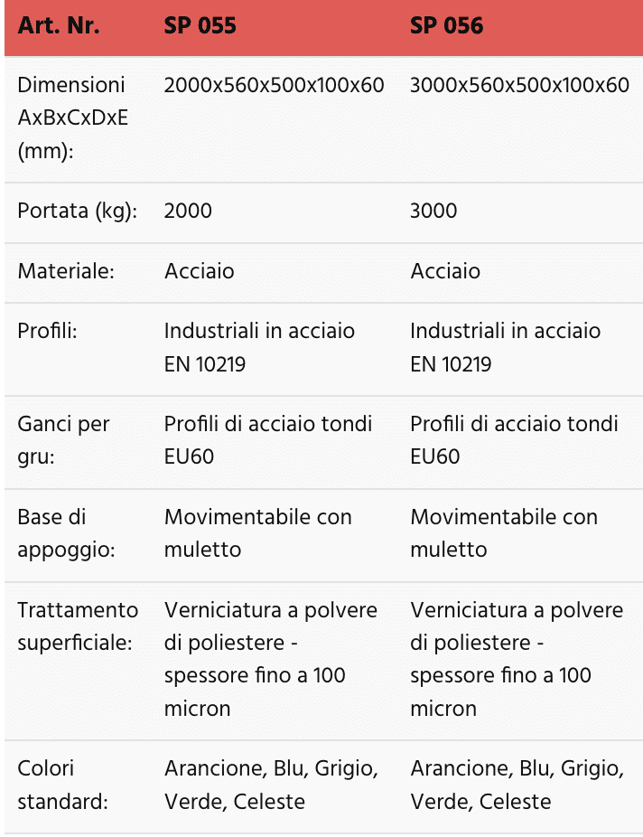 • Movimentabili con carrello elevatore e con gru