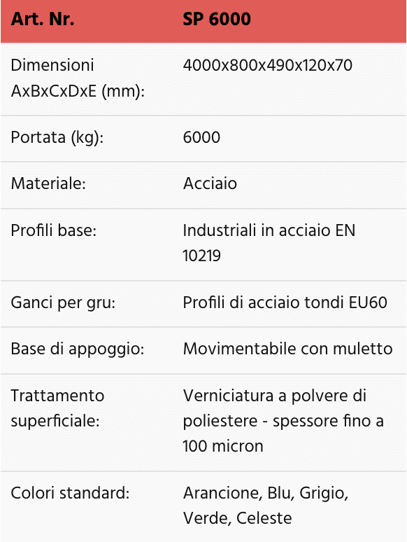 • Portata elevata (3000 o 6000 Kg).